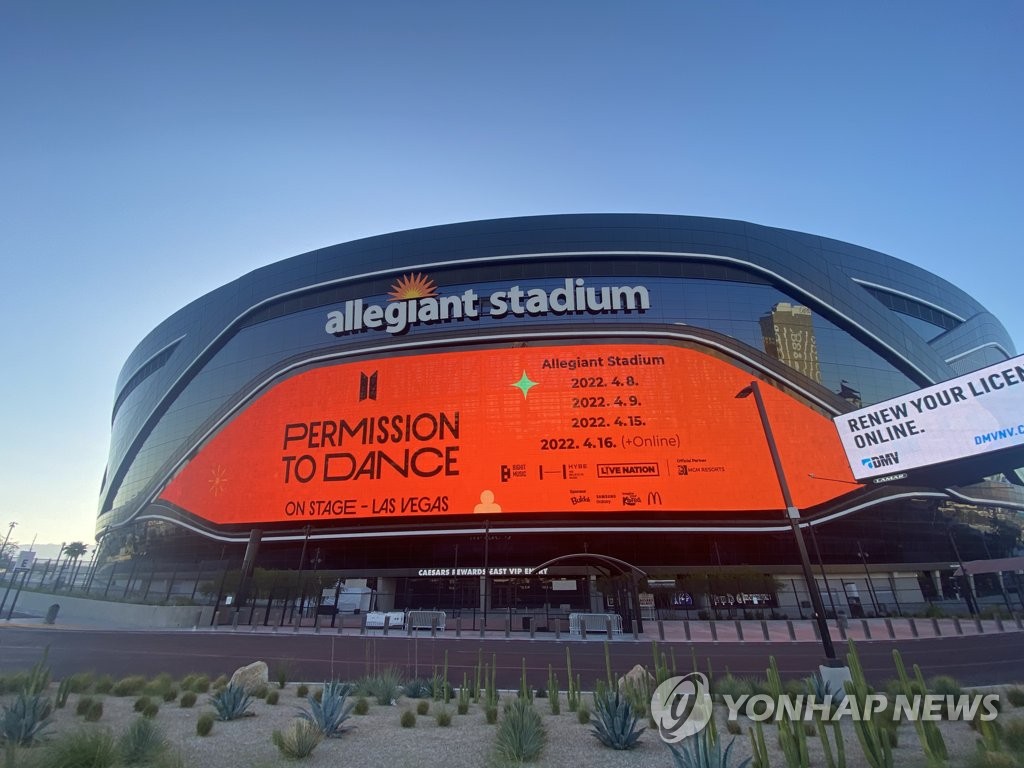 The septet will hold four "Permission to Dance on Stage - Las Vegas" shows on Friday-Saturday and April 15-16 (U.S. time) at Allegiant Stadium, about a month after it had its first concerts before a live audience in Seoul since 2019.