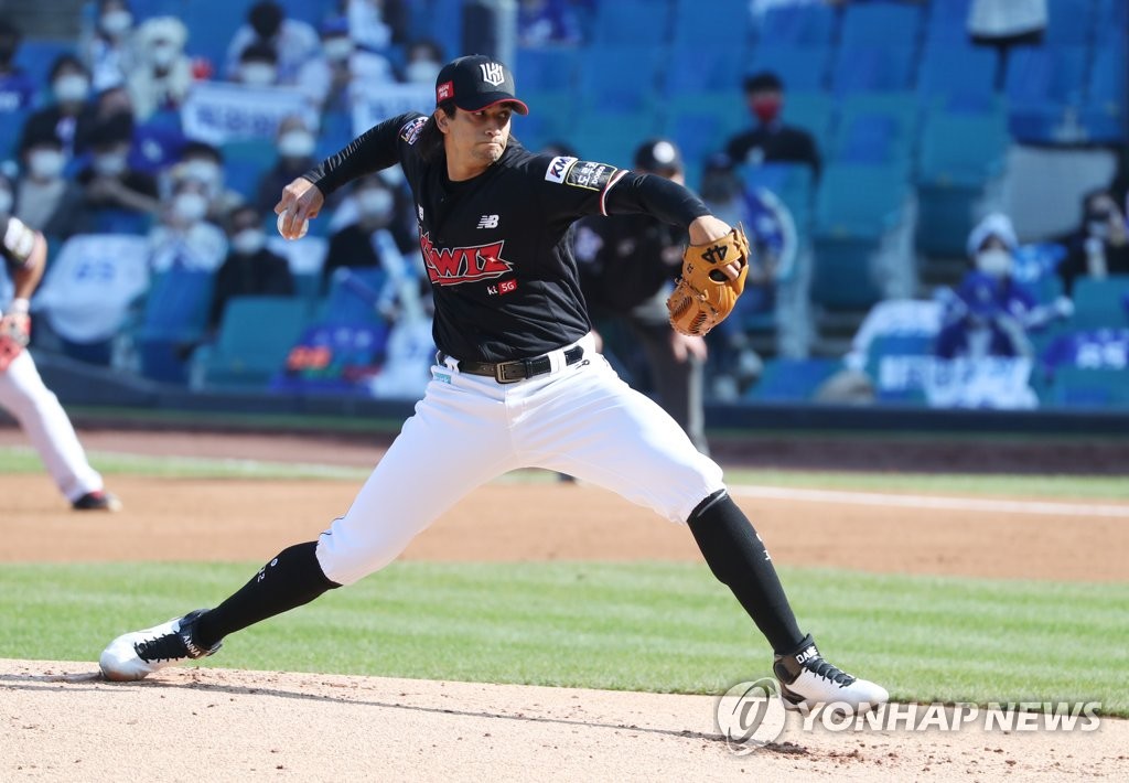 | ▲  In this file photo from Oct. 31, 2021, William Cuevas of the KT Wiz pitches against the Samsung Lions in the bottom of the first inning of a Korea Baseball Organization tiebreaker game at Daegu Samsung Lions Park in Daegu, some 300 kilometers southeast of Seoul. (Yonhap) |