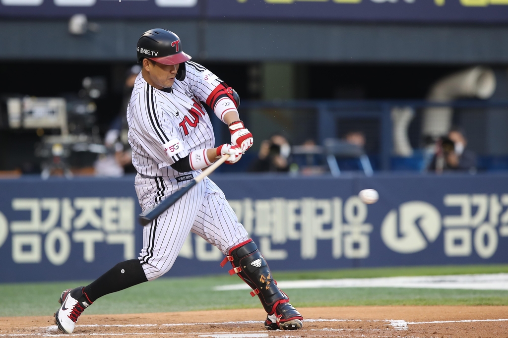 | ▲ Yoo Kang-nam of the LG Twins takes a swing against the Doosan Bears during a Korea Baseball Organization regular season game at Jamsil Baseball Stadium in Seoul on May 3, 2022, in this photo provided by the Twins. (PHOTO NOT FOR SALE) (Yonhap) |