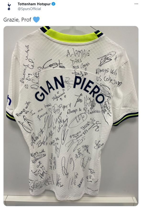 '잔 피에로'라는 이름이 적힌 유니폼에 선수들이 메시지와 사인을 남기기도 했다.