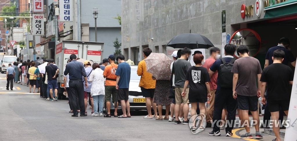 | ▲ Citizens wait in line to receive COVID-19 tests at a makeshift clinic in western Seoul on July 11, 2021. (Yonhap) |