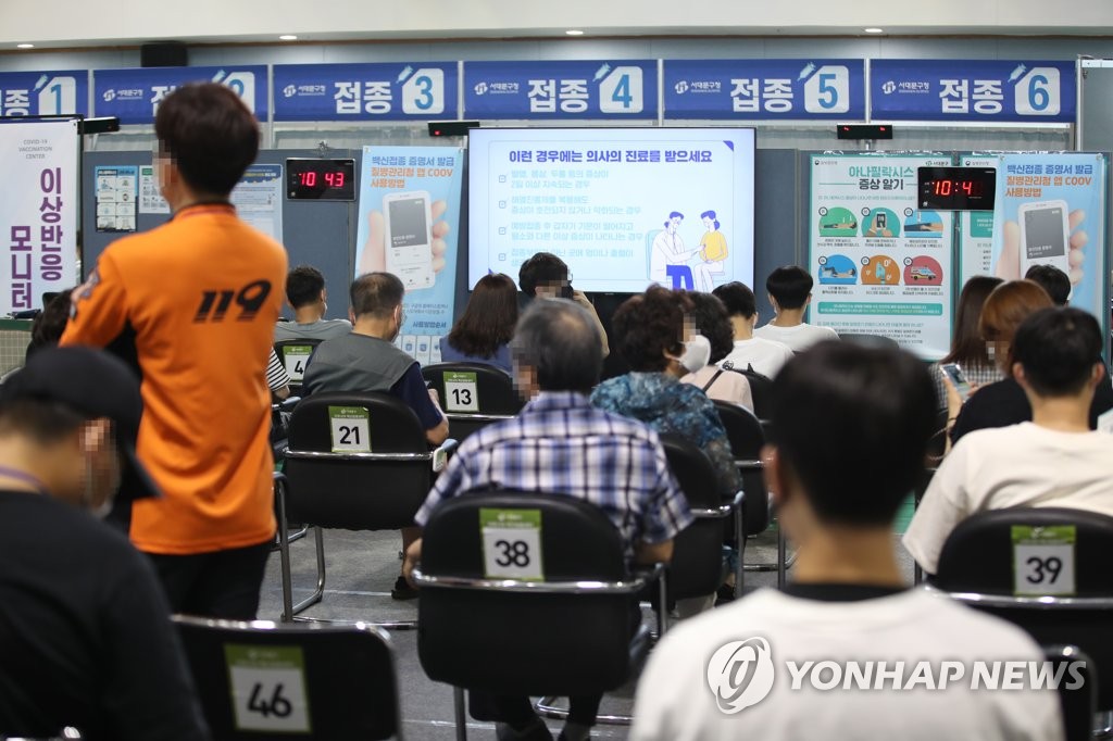 | ▲ People wait for COVID-19 vaccinations at an inoculation center in Seoul on July 27, 2021. (Yonhap) |