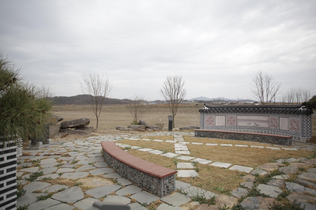 둘레에 담 세우고 바닥에 디딤돌 설치, 정자에 현판도 내걸어