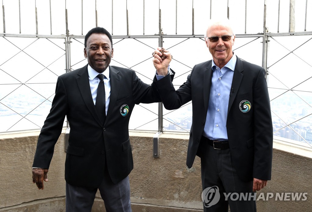 | ▲ 2015년 4월 뉴욕에서 만난 펠레와 베켄바워 [AFP=연합뉴스 자료사진] |