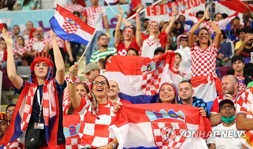 | ▲ 기뻐하는 크로아티아 관중 (도하=연합뉴스) 김도훈 기자 = 27일(현지시간) 카타르 도하의 칼리파 인터내셔널 스타디움에서 열린 2022 카타르 월드컵 조별리그 F조 크로아티아와 캐나다의 경기가 4-1 크로아티아의 역전승으로 끝나자 크로아티아 응원팬들이 환호하고 있다. 2022.11.28 superdoo82@yna.co.kr |
