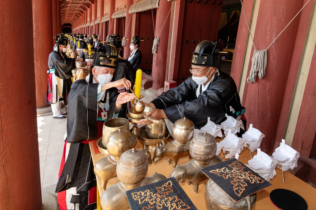 | ▲ This photo provided by the Cultural Heritage Administration shows the Royal Ancestral Rite, which happened on May 2, 2021. (PHOTO NOT FOR SALE) (Yonhap) |
