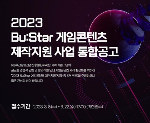 | ▲ 2023년 부스타(Bu:Star) 게임콘텐츠 제작 지원 사업공모 [부산정보산업진흥원 제공] |