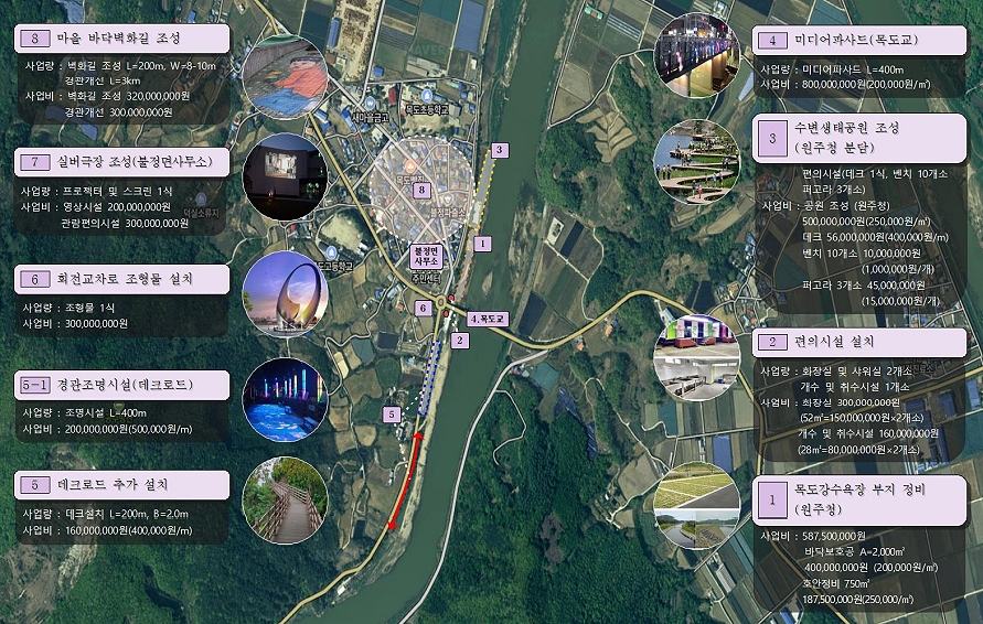 단순 통행 기능만 하는 목도교는 상부 난간에 미디어 파사드를 설치하고, 하부에는 야간 경관조명을 설치해 지역 랜드마크로 삼는다는 복안이다. 야경 명소로 알려진 춘천 의암호 소양2교나 상주 낙동강 범월교가 모델이다.