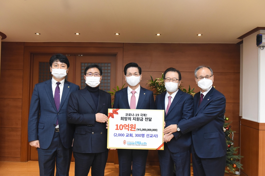 ▲ 여의도순복음교회(담임목사 이영훈)는 코로나19로 교회 운영에 어려움을 겪어 온 기독교대한하나님의성회(기하성) 소속 농어촌 미자립교회 2천 곳과 해외 선교지 교회 300곳에 '희망의 지원금' 10억 원을 전달했다고 6일 밝혔다. (서울=연합뉴스)