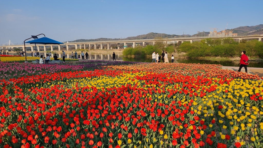 대전 갑천 둔치에 튤립 50만 송이 활짝…계절별 꽃단지 조성