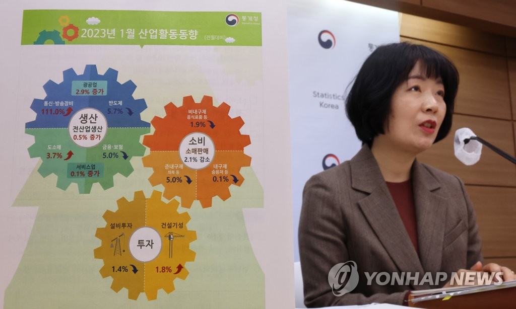 SEOUL, March 2 (Yonhap) -- South Korea's industrial output edged up 0.5 percent on-month in January, while retail sales extended losses to a third month, data showed Thursday.