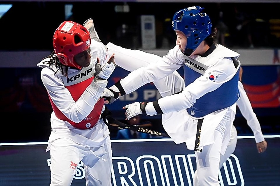 | ▲ 여자 67㎏급 남민서(오른쪽)의 결승 경기 장면. [세계태권도연맹 제공. 재판매 및 DB 금지] |