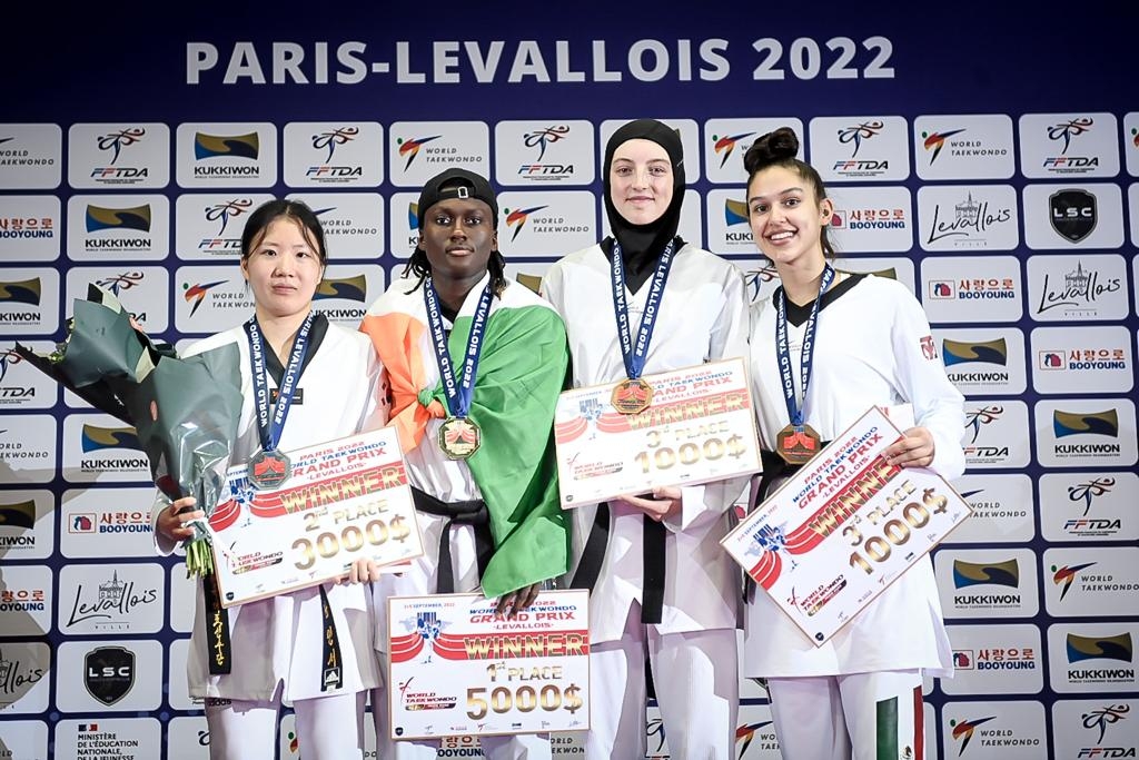 | ▲ 남민서(맨 왼쪽)가 은메달을 딴 여자 67㎏급 시상식 모습. [세계태권도연맹 제공. 재판매 및 DB 금지] |