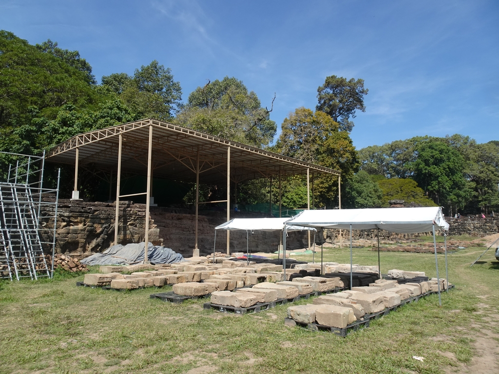 앙코르 유적은 유적지 배수가 원활하지 않고 점토질 모래층이 두껍게 분포해 있어 우기 때마다 코끼리 테라스 구조물이 불규칙적으로 침하하는 현상이 반복적으로 발생했다.