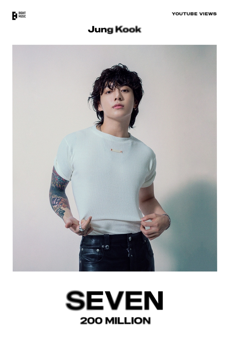 (서울=연합뉴스) 이태수 기자 = 그룹 방탄소년단(BTS) 정국의 글로벌 히트곡 '세븐'(Seven) 뮤직비디오가 유튜브에서 조회 수 2억건을 넘겼다고 소속사 빅히트뮤직이 8일 밝혔다.