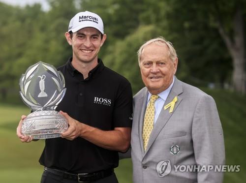 | ▲ 작년 메모리얼 토너먼트 우승자 패트릭 캔틀레이와 함께 선 니클라우스. [EPA=연합뉴스] |