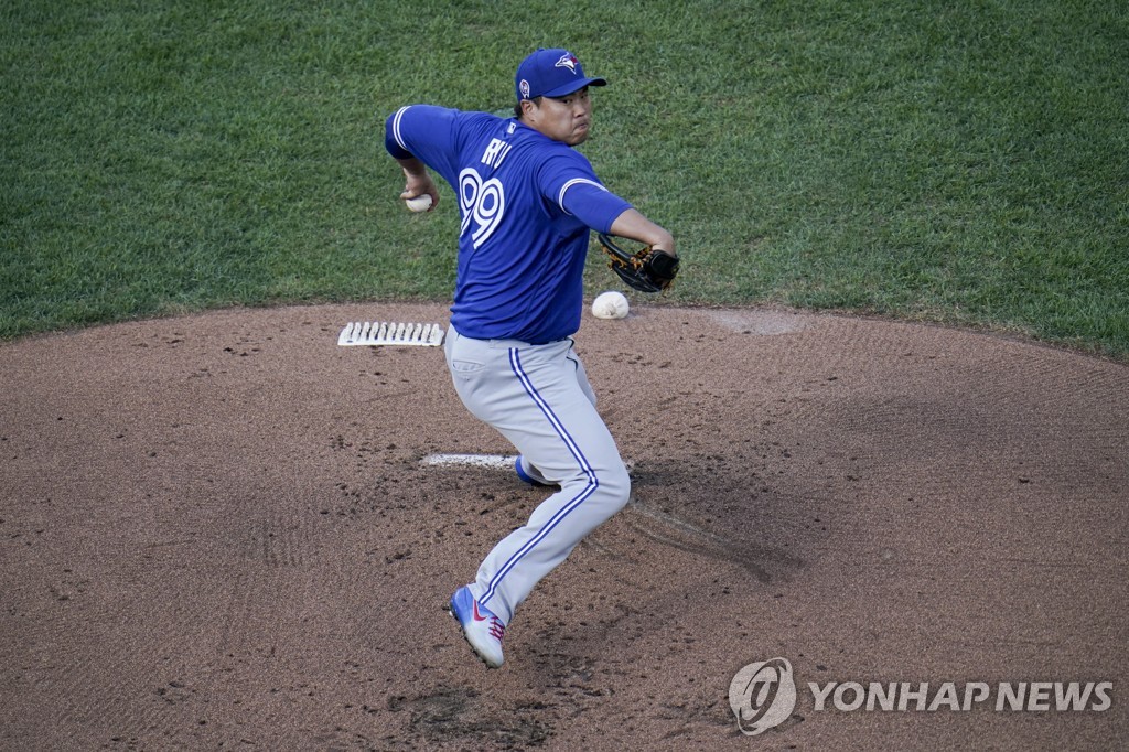 | ▲ In this Associated Press photo, Ryu Hyun-jin of the Toronto Blue Jays pitches against the Baltimore Orioles in the bottom of the second inning of a Major League Baseball regular season game at Oriole Park at Camden Yards in Baltimore on Sept. 11, 2021. (Yonhap) |