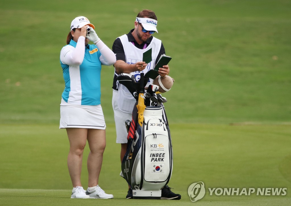 | ▲ 1라운드 도중 거리 측정기로 코스를 관찰하는 박인비 [AFP=연합뉴스] |