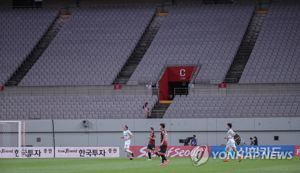 | ▲ A K League 1 football match is played without a crowd at Seoul World Cup Stadium on July 14, 2021, due to virus curbs. (Yonhap) |