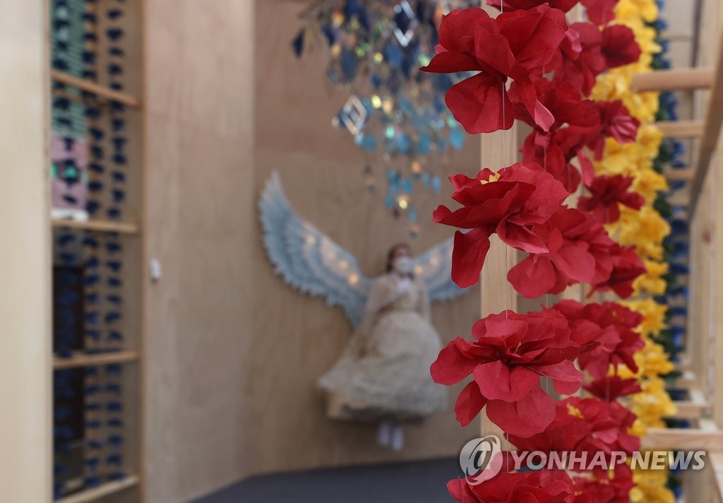 | ▲ This image taken on Oct. 19, 2021 shows an installation work of thousands of hanging paper flowers on display at Gyeongbok Palace in central Seoul. (Yonhap) |