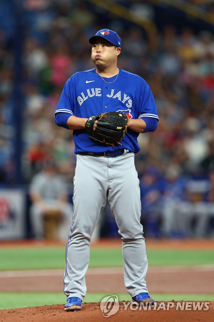 (서울=연합뉴스) 하남직 기자 = 1-1로 맞선 5회말 2사 후, 류현진(35·토론토 블루제이스)은 마운드를 방문한 찰리 몬토요 감독에게 공을 넘기고 더그아웃으로 걸어갔다.