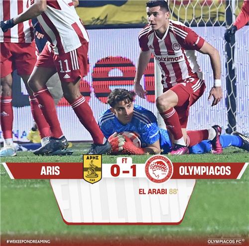 올림피아코스는 26일(이하 한국시간) 그리스 테살로니키의 클레안티스 비켈리디스 스타디움에서 열린 아리스와 2022-2023시즌 그리스컵 8강 2차전에서 1-0으로 이겼다.