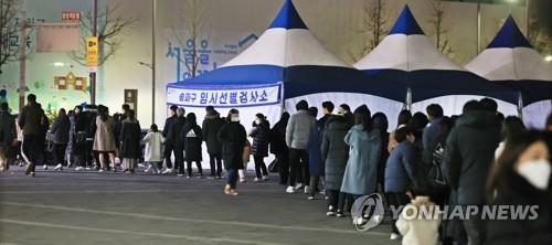 | ▲ People line up to get tested for COVID-19 at a makeshift clinic in Seoul on Dec. 9, 2021. (Yonhap) |