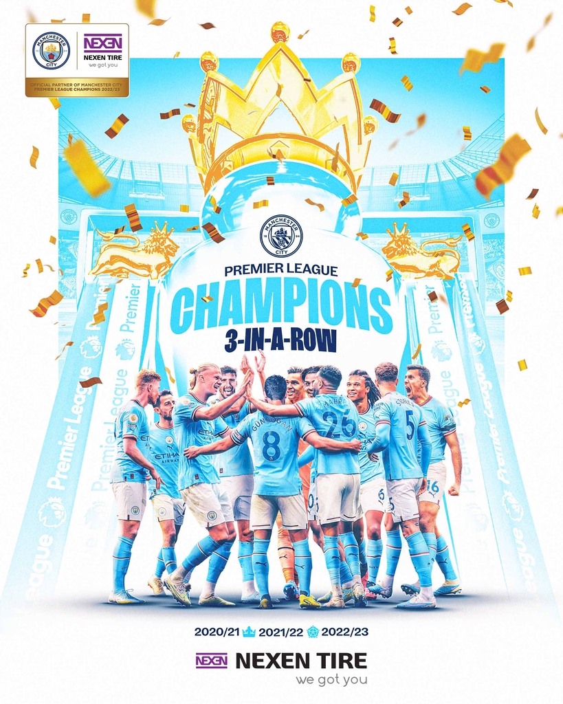 ▲ 넥센타이어는 공식 파트너 맨체스터 시티(맨시티)의 2022/23 시즌 프리미어리그 우승 기념 이벤트를 한다고 30일 밝혔다. 넥센타이어는 맨시티와 2015년부터 공식 파트너십을 맺어오고 있다. 이번 이벤트는 30일부터 다음 달 9일까지 넥센타이어 공식 인스타그램에서 맨시티 우승 이벤트 피드를 본인 인스타그램 스토리에 리그램하면 된다. 이벤트 참여자 중 추첨을 통해 맨시티 유니폼, BHC 치킨 기프티콘, 스타벅스 음료 쿠폰 등을 증정한다. (부산=연합뉴스)