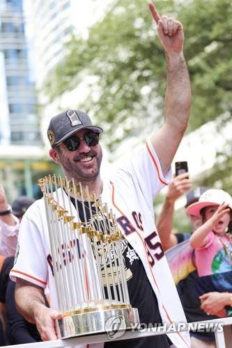 | ▲ 휴스턴 우승 퍼레이드에 참가한 저스틴 벌랜더 [게티이미지/AFP=연합뉴스] |