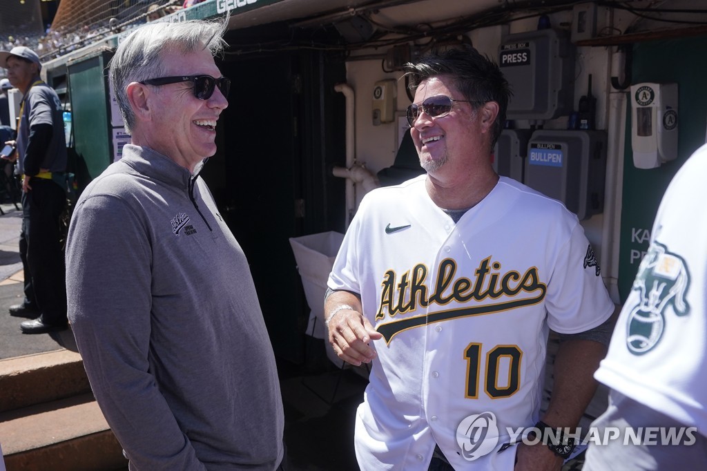 | ▲ 구단주 자문역으로 이선 후퇴하는 빌리 빈 오클랜드 부사장(왼쪽) [AP=연합뉴스 자료사진] |
