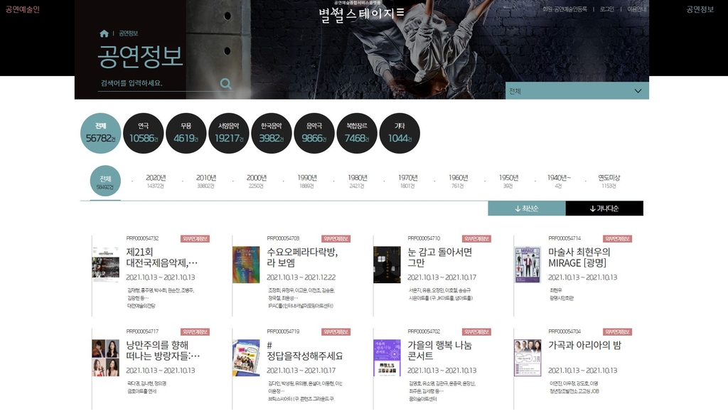 | ▲ '별별스테이지' 공연정보 검색 화면 [국립극장 제공. 재판매 및 DB 금지] |