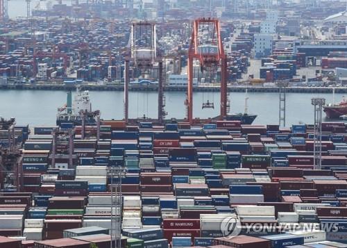 | ▲ This file photo, taken on May 23, 2022, shows stacks of containers at a port in South Korea's southeastern city of Busan. (Yonhap) |