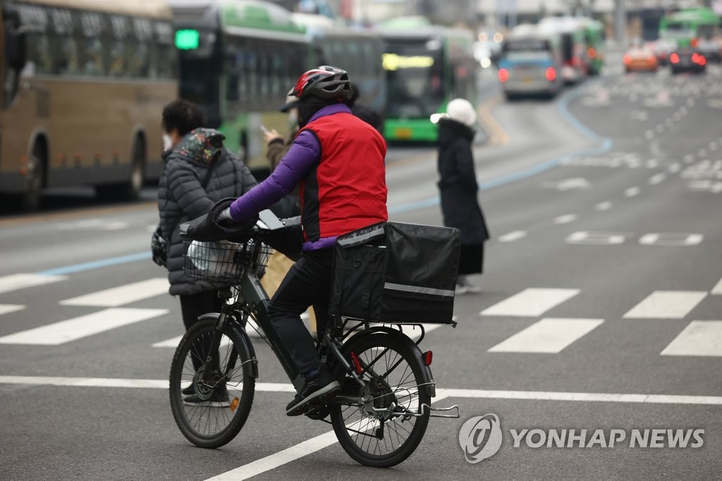 | ▲ A delivery worker crosses a street in Seoul on Jan. 5, 2023. (Yonhap) |