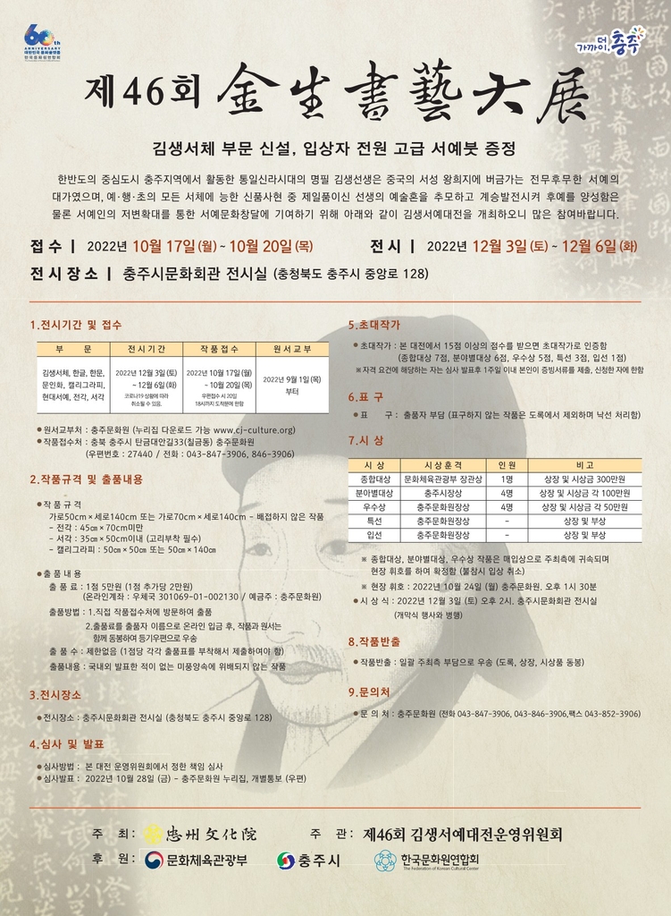 | ▲ 제46회 김생서예대전 포스터 충주문화원 제공. 재판매 및 DB 금지 |
