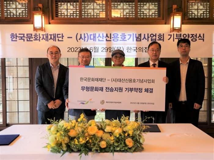 (서울=연합뉴스) 김예나 기자 = 한국문화재재단은 대산신용호기념사업회와 무형문화재 전승 활동 지원 및 기록화 사업을 위한 기부 약정을 체결했다고 30일 밝혔다.