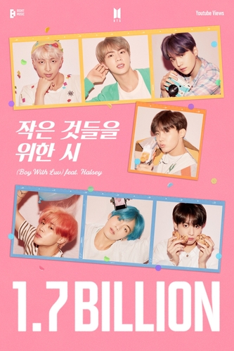 SEOUL, Aug. 22 (Yonhap) -- K-pop supergroup BTS' music video for its 2019 song "Boys with Luv" has surpassed 1.7 billion views on YouTube, making it the second-most watched video following "Dynamite," its agency said Tuesday.