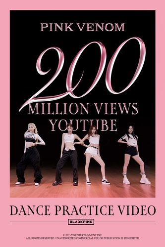 SEOUL, Aug. 25 (Yonhap) -- The dance practice video for "Pink Venom," a 2022 hit single by K-pop girl group BLACKPINK, has surpassed 200 million views on YouTube, the group's agency said Friday.