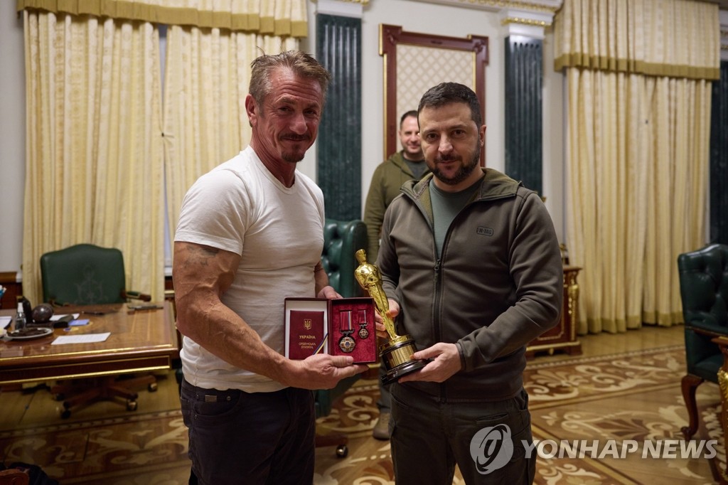(로스앤젤레스=연합뉴스) 임미나 특파원 = 오스카상을 두 번이나 받은 할리우드 연기파 배우 숀 펜이 13일(현지시간) 볼로디미르 젤렌스키 우크라이나 대통령에 대해 "완벽한 결의를 지닌, 타고난 지도자"라고 평가했다.