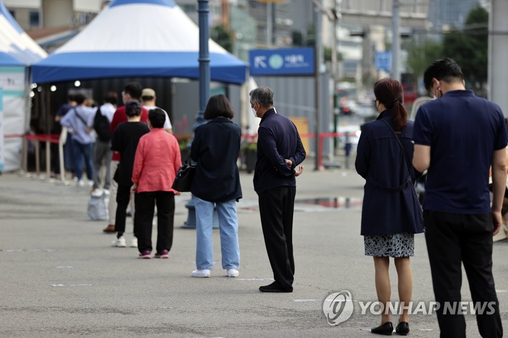| ▲ Citizens wait in line to receive virus tests at a makeshift virus testing clinic in Seoul on June 9, 2021. (Yonhap) |