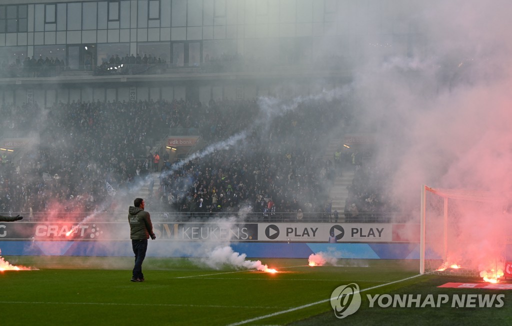 | ▲ 잠시 중단된 헨트와 브뤼허의 경기 [AFP=연합뉴스] |