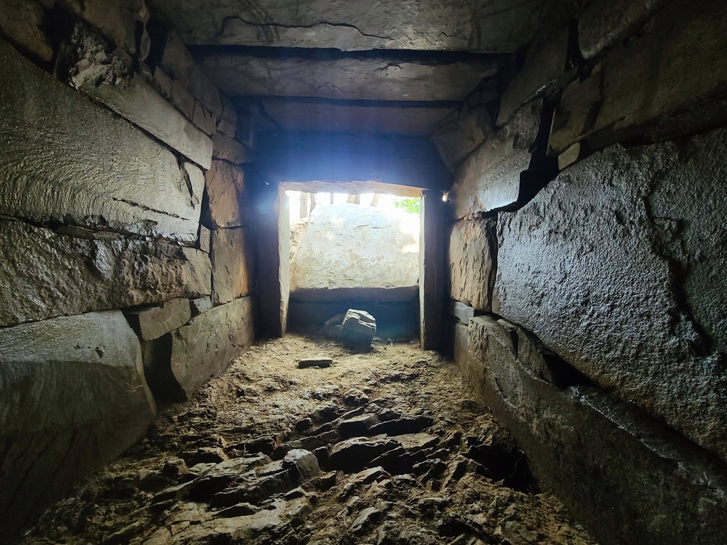 | ▲ 합천 '중산동 고분Ⅰ' 내부에서 바깥쪽으로 본 모습. 문틀 구조가 확연히 보인다. [경남연구원 제공. 재판매 및 DB 금지] |