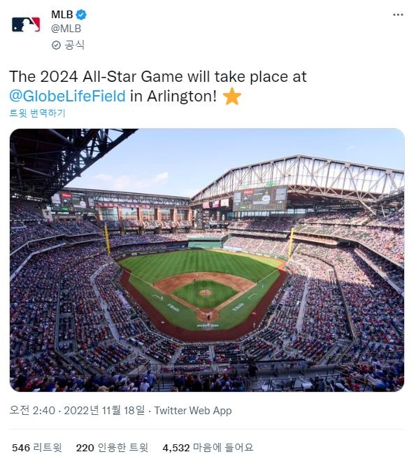 2024년 MLB 올스타전, 텍사스주 글로브라이프필드서 개최