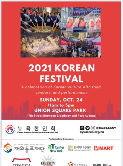 (서울=연합뉴스) 왕길환 기자 = 미국 뉴욕한인회(회장 찰스 윤)는 현지시간 24일 맨해튼 유니온 스퀘어에서 '2021 코리안 페스티벌'을 개최한다고 20일 밝혔다.