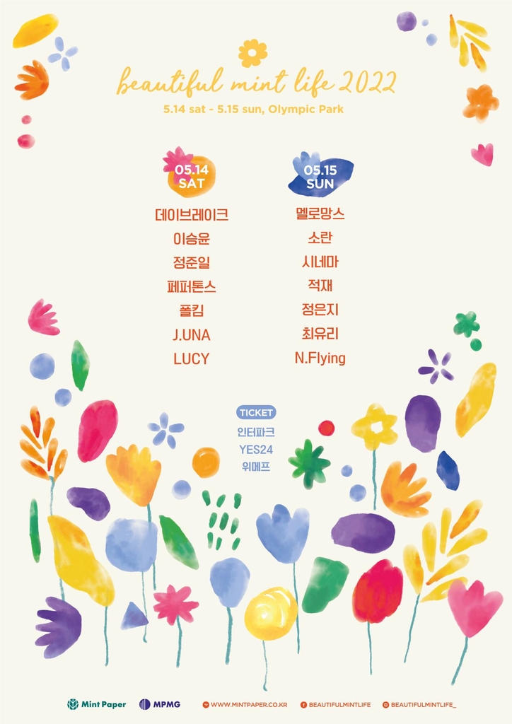 공연 주최사 민트페이퍼는 24일 "올해 '뷰티풀 민트 라이프' 행사는 5월 14일과 15일 이틀에 걸쳐 서울 송파구 올림픽공원 88잔디마당에서 열린다"고 밝혔다.