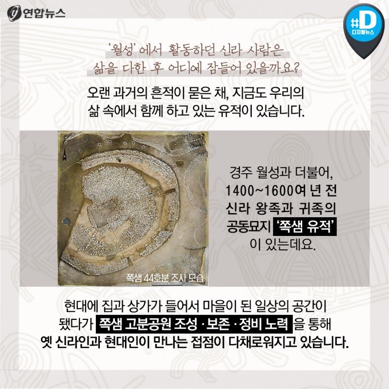현대에 집과 상가가 들어서 마을이 된 일상의 공간이 됐다가 쪽샘 고분 공원 조성·보존·정비 노력을 통해 옛 신라인과 현대인이 만나는 접점이 다채로워지고 있습니다.