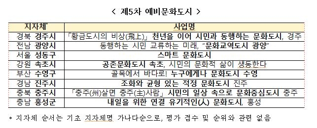 | ▲ 제5차 예비문화도시 [문화체육관광부 제공] |
