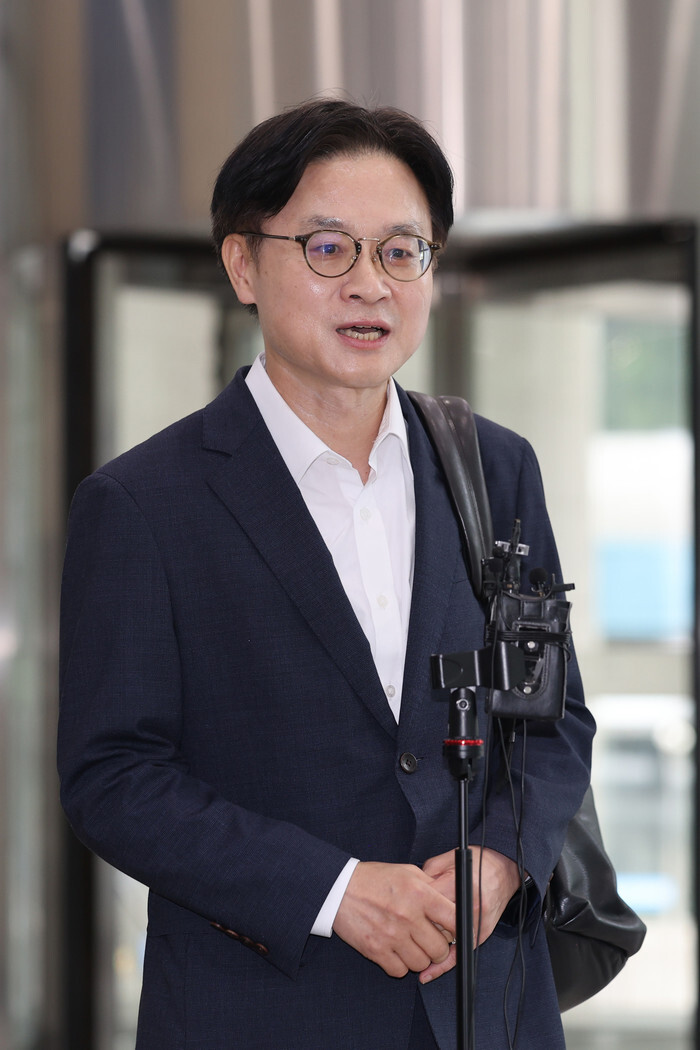 Kim Jung-kwan, nominated by President Lee Jae Myung as the trade, industry and energy minister, speaks to reporters as he arrives at his temporary office in Seoul on June 30, 2025, to prepare for his parliamentary confirmation hearing. (Yonhap)