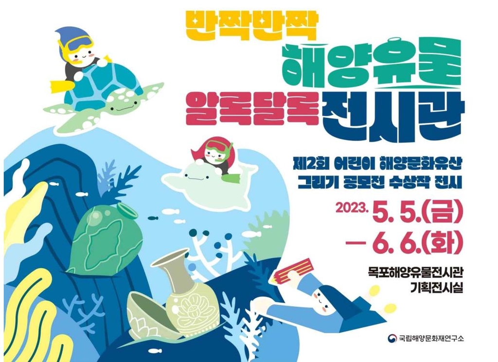 ▲ 어린이들이 그린 '해양문화유산' 작품 108점 전시 = 국립해양문화재연구소는 이달 5일부터 6월 6일까지 전남 목포해양유물전시관에서 '반짝반짝 해양유물, 알록달록 전시관' 전시를 선보인다.