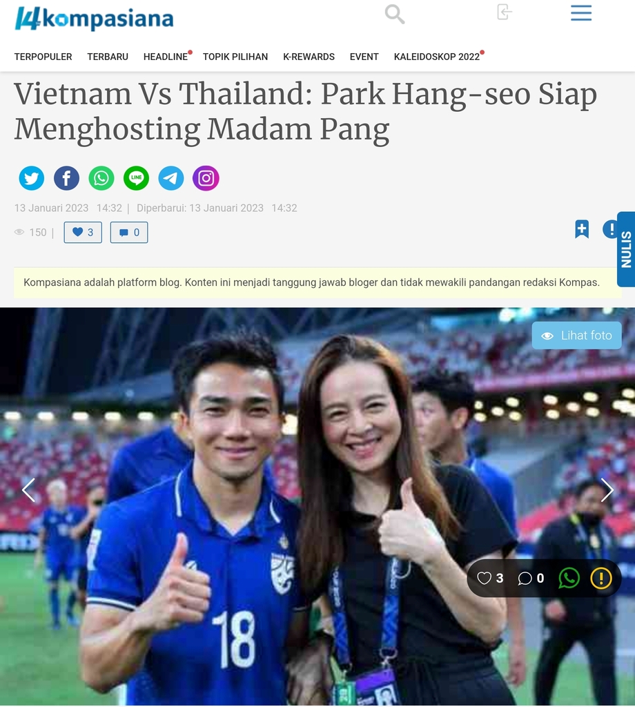 | ▲ 박항서 감독과 마담 팡의 대결 구도로 보도한 동남아시아 매체 기사 제목. [콤파시아나 인터넷 홈페이지 화면 캡처. 재판매 및 DB 금지] |