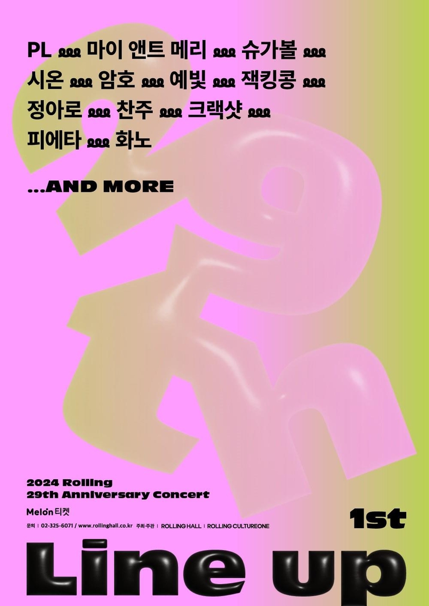 ▲ 롤링홀 개관 29주년 기념 공연 = '인디음악의 성지'로 꼽히는 서울 시내 공연장 롤링홀이 내년 개관 29주년을 맞아 6개월에 걸쳐 기념 공연을 연다.